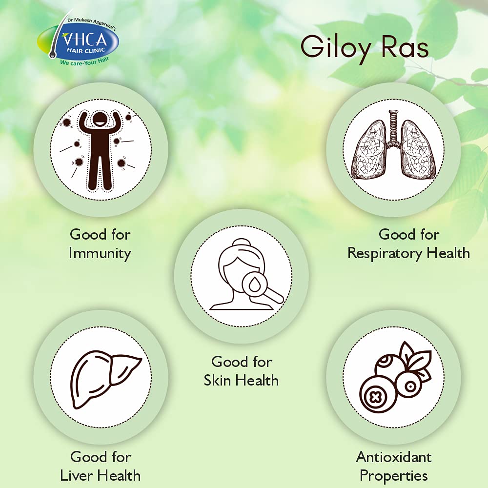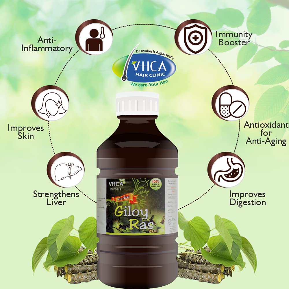 VHCA Giloy Juice Giloy Juice is famous to many acute and chronic .VHCA Ayurvedas giloy Ras is very effective in such disorders