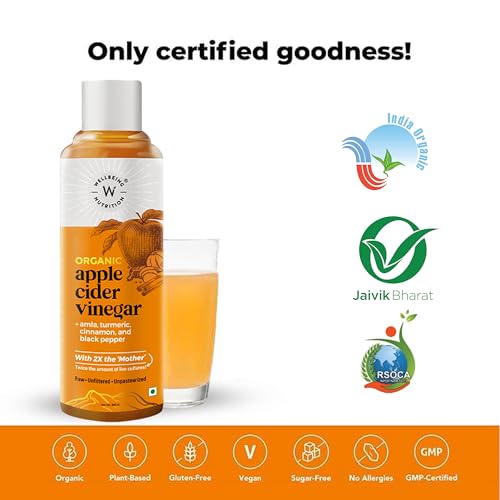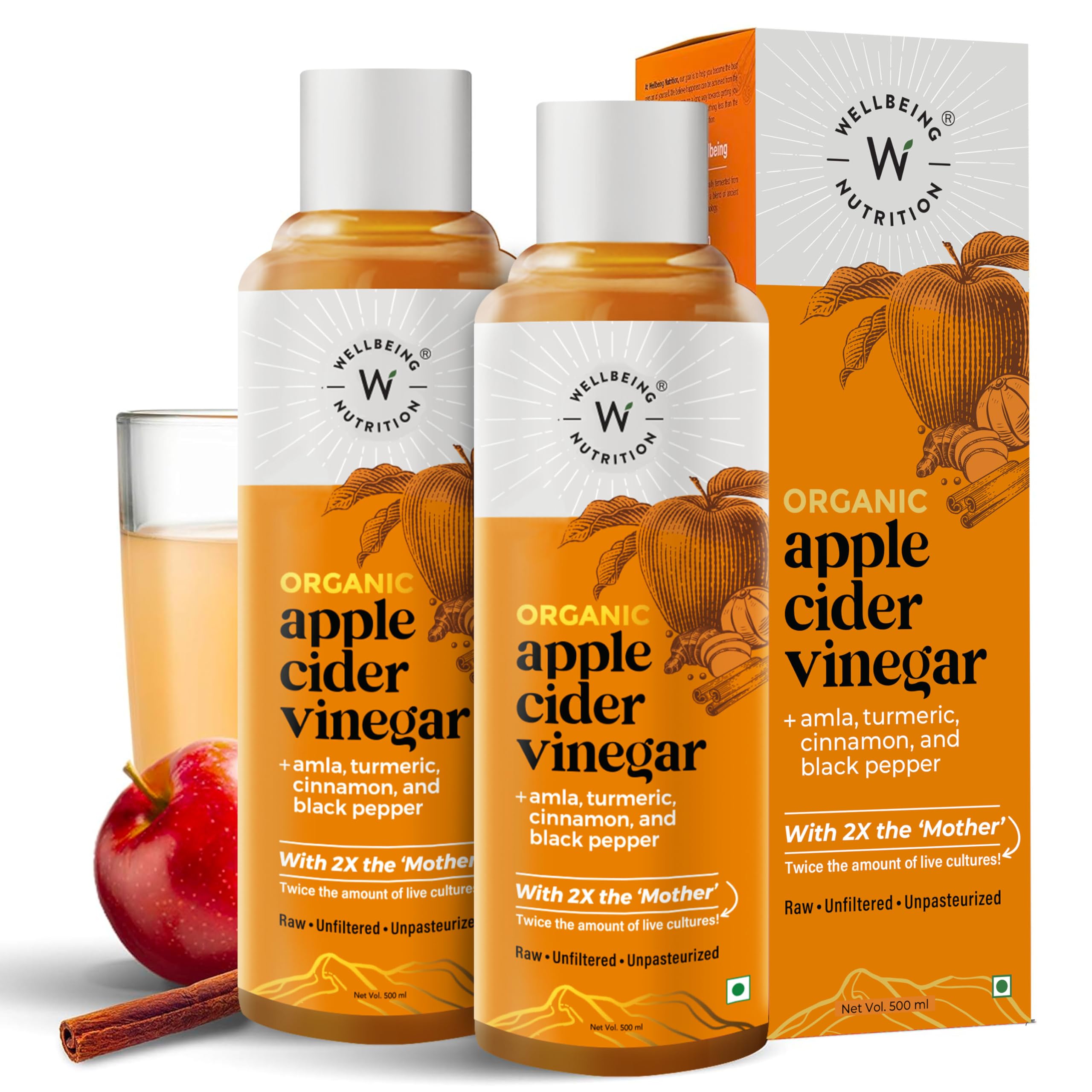 Wellbeing Nutrition Apple Cider Vinegar with Turmeric, Amla, Cinnamon and Black Pepper | Raw Unfiltered with 2X The Mother | Weight Management, Boost Immunity & Detox, Skin Health | 500ml - Pack of 3