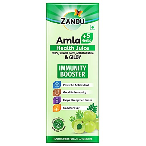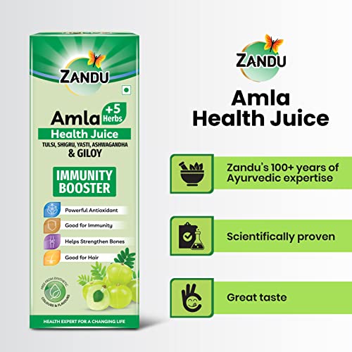 Zandu Amla + 5 Herbs Health Juice | Ayurvedic Immunity Booster | Powerful Antioxidant | Good for Bones and Hair |No Added Sugar (1000ml)