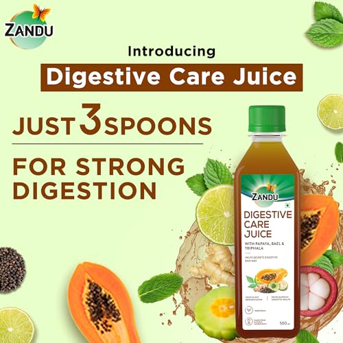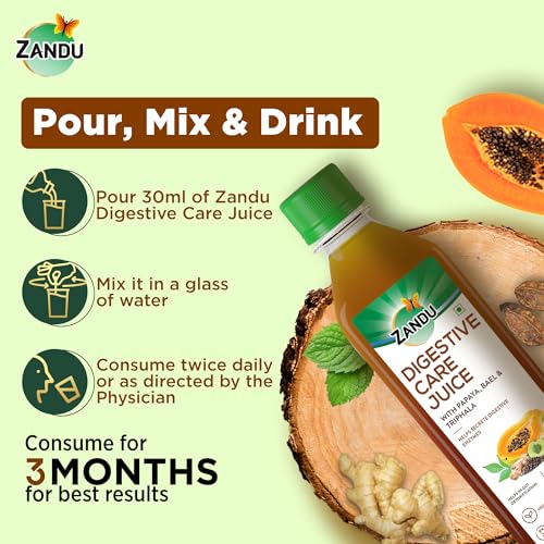 Zandu Digestive Care Juice is the gut health solution for individuals dealing with various digestive problems. Its effectiveness extends to a wide array of gut issues including indigestion bloating and loss of appetite. Not only is it a practical choice for digestive health but it also delights the taste buds with its pleasant flavor making it an enticing and health-conscious addition to your daily routine. In Ayurveda it is believed that an unhealthy digestive system is often the root cause of all diseases including liver issues intestinal problems and low immunity. Zandus Digestive Care Juice has natural prebiotic ingredients like Papaya Triphala(Amalaki Bibhitaki & Haritaki) and Bael known to strengthen digestion. With a rich heritage in Ayurveda Zandu instills trust in its consumers assuring the reliability and quality of the product. Furthermore the scientific validation of this formula underscores its effectiveness and safety making it a trusted choice for those seeking relief from digestive discomfort.