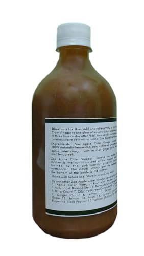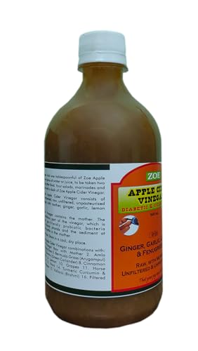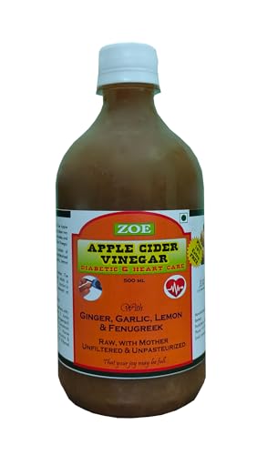 ZOE Apple Cider Vinegar (ZOE ACV) with Ginger Garlic Lemon and Fenugreek is a naturally fermented elixir made from delicious natural Himalayan apples. This 100% pure vinegar contains the goodness of mother of vinegar which gives it a cloudy appearance and affirms its high-quality unprocessed nature.