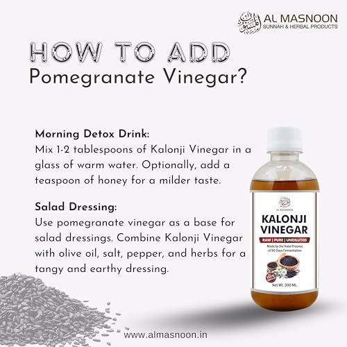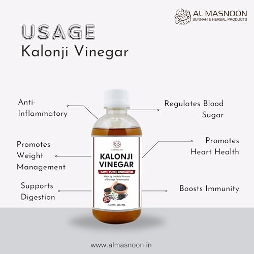 AL MASNOON Kalonji/Black Seed Vinegar/kalonji ka Sirka/raw & undiluted / 100% Natural and Pure 300ml