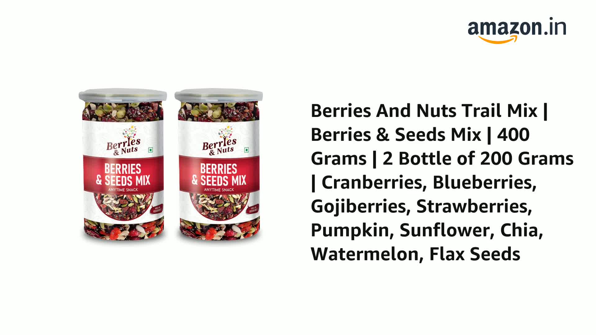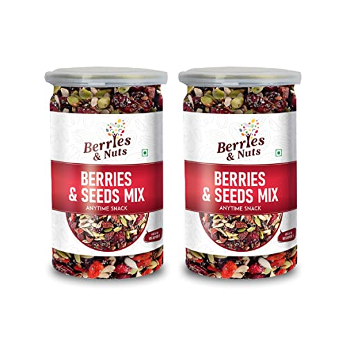 Berries And Nuts Trail Mix | Berries & Seeds Mix | 400 Grams | 2 Bottle of 200 Grams | Cranberries, Blueberries, Gojiberries, Strawberries, Pumpkin, Sunflower, Chia, Watermelon, Flax Seeds