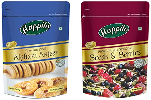 Happilo Premium Afghani Anjeer,Dried,200 grams & Premium International Whole Seeds & Berries Pouch, 200 grams
