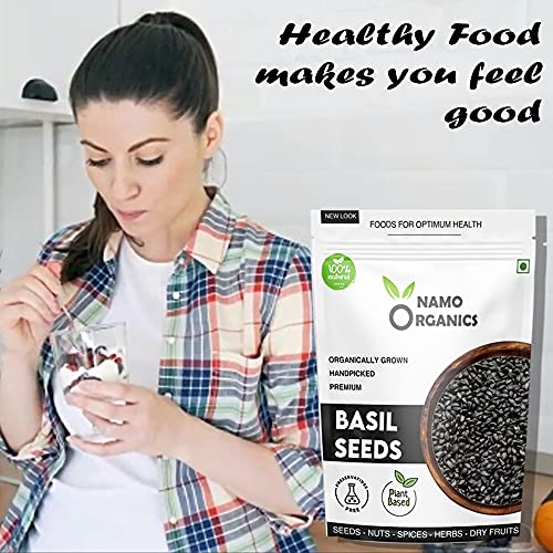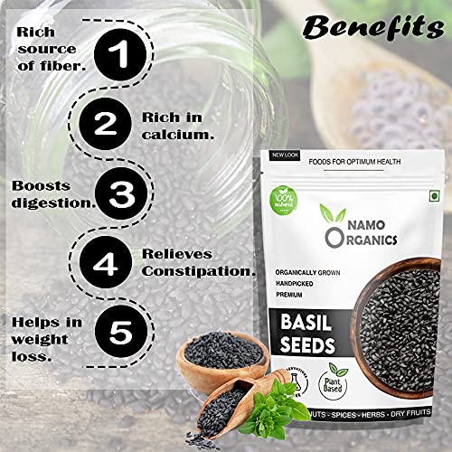 Namo Organics - Basil Seeds 500 Gm - Premium Raw Sabja Seed | Protein Rich | Basil Seeds for heathy Life
