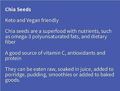 • Chia Seeds are a superfood with nutrients such as Omega-3 polyunsaturated fats and dietary fiber