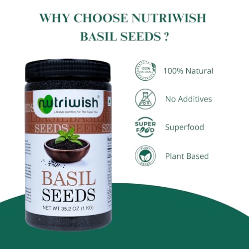 Nutriwish Natural Basil Seeds 1 Kg | Pure & Fresh | Safe & Beneficial Tulsi Seeds | for Eating | No Additives | Good for Healthy Snacks |