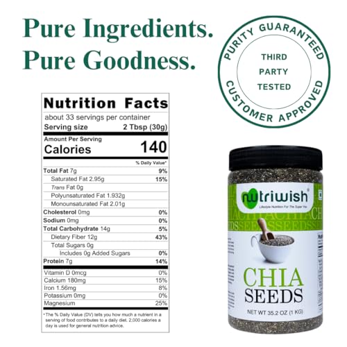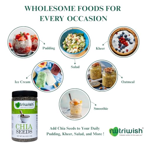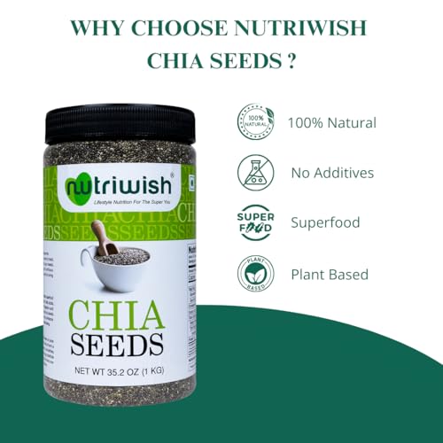 Nutriwish Premium Chia Seeds 1Kg| Omega Rich | High in Fiber | Pack of 1 |
