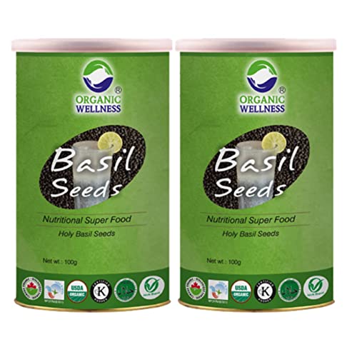 Organic Wellness Basil Seeds 100 Gram Pack | Raw Basil Seeds |Tukmaria Seeds| Sabja Seeds for Eating|Falooda Seeds Pack of 2
