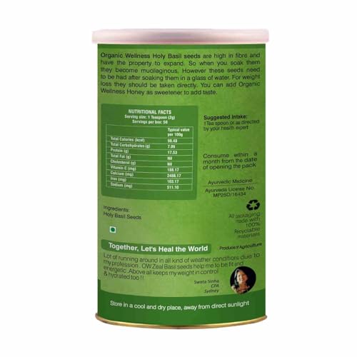 Organic Wellness basil seeds are high in fibre and have many health benefits like as it has ability to improve digestive health very helpful in weight loss regulating blood sugar cooling the body relieving stress reducing inflammation and preventing certain infections. They are particularly used as an addition to beverages and desserts. Basil seeds have the property to expand so when you soak them they become mucilaginous. However these seeds be consumed after soaking them in a glass of water. They can mixed in juice or smoothie. You can Organic Wellness honey as sweetener.