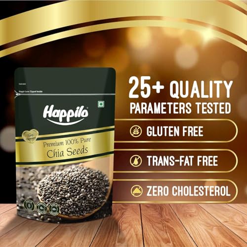 Happilo Premium Raw Authentic Chia Seeds 500g (250g each, Pack of 2), Unroasted For Eating With Omega 3 and Fiber, Healthy Snacks