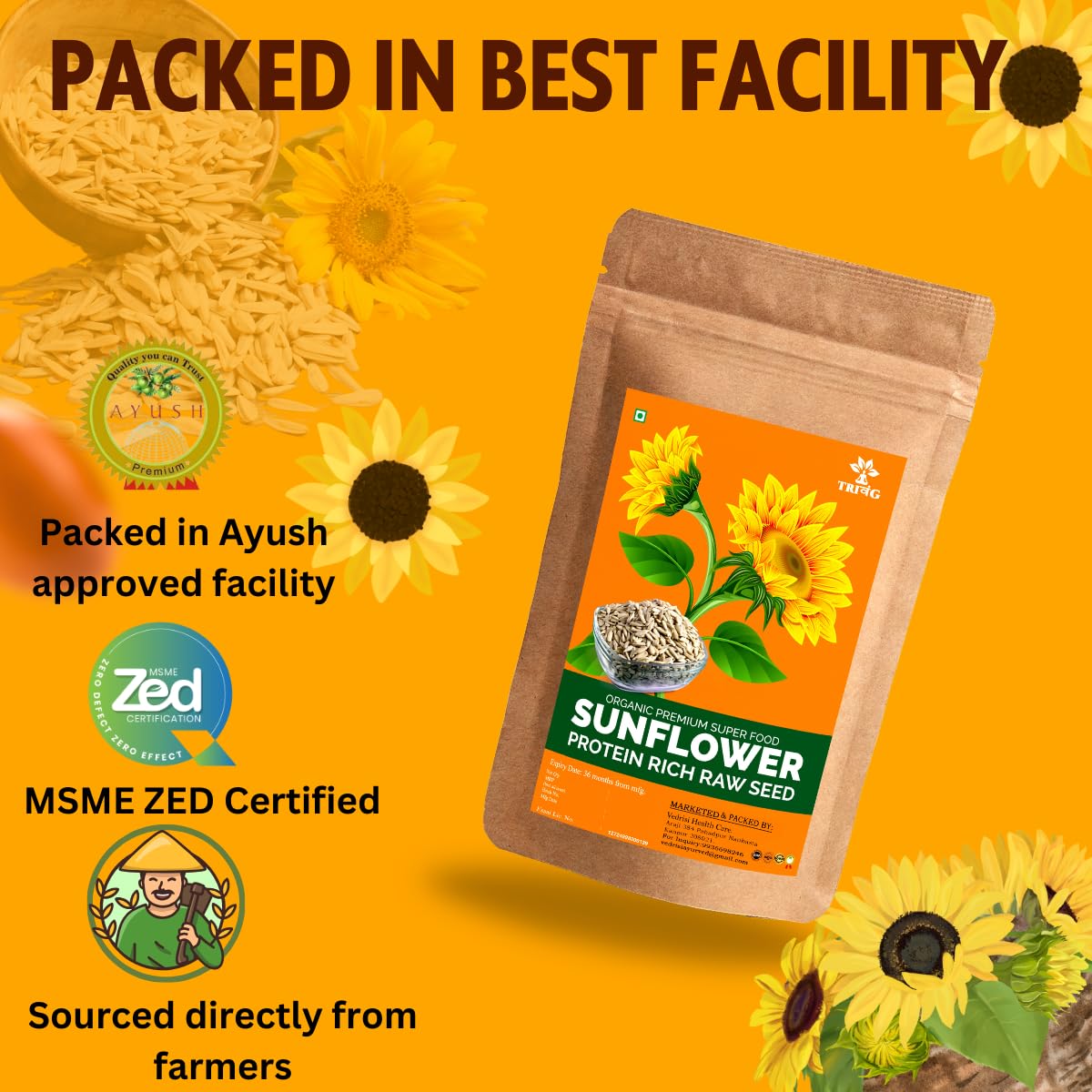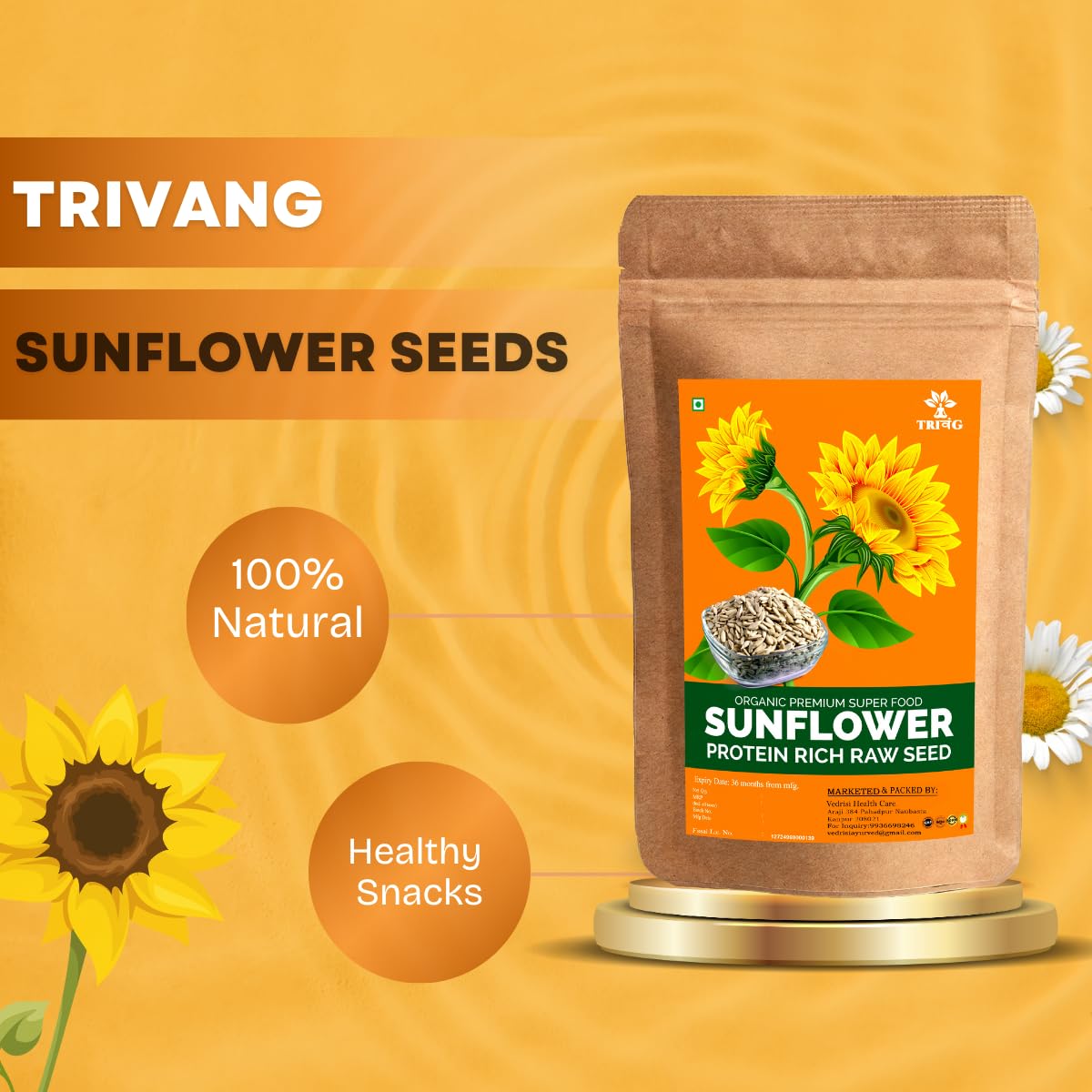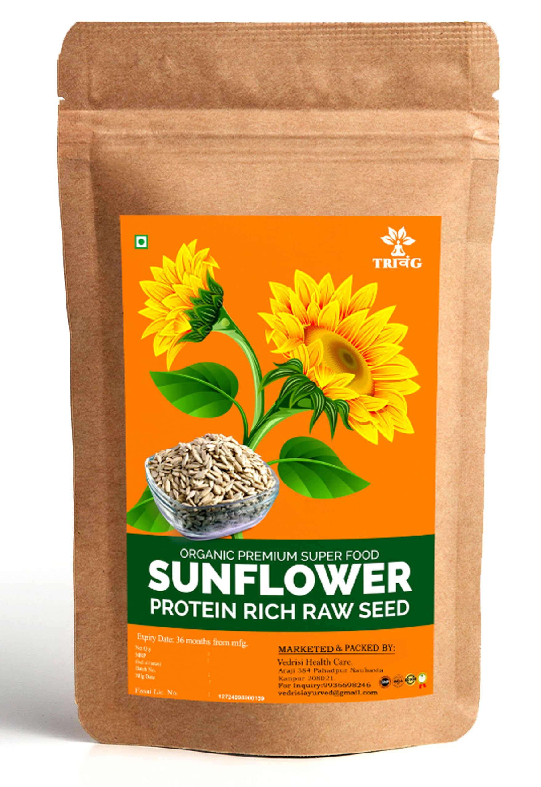 Trivang Sunflower Seeds 250g - Raw Sunflower Seeds for Eating | Diet Food | High in Fibre | Weight management | Source of Antioxidants | Surajmukhi Seeds