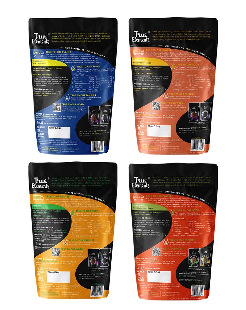True Elements Healthy Raw Seeds Combo (Chia, Sunflower, Pumpkin & Watermelon), 600g (150g x4)