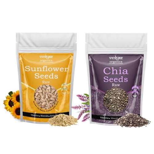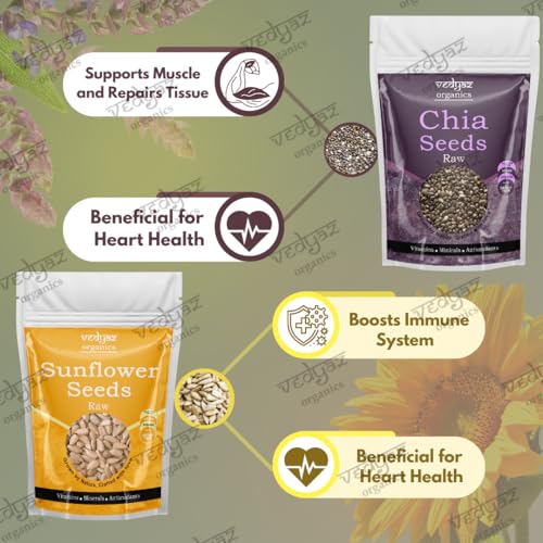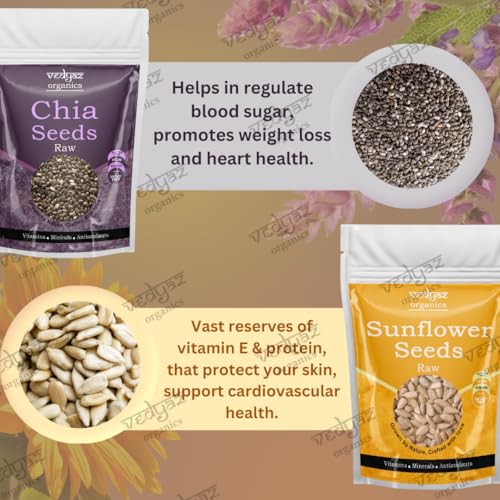 Introducing Vedyaz Organics' Chia and Sunflower Seed Combo – a vibrant blend of superfoods designed to invigorate your diet and elevate your wellness. This unique combination pairs the ancient wisdom of chia seeds with the nourishing power of sunflower seeds creating a versatile and nutrient-rich mix that’s perfect for any culinary creation. Whether you're kick-starting your day with a nutrient boost or seeking a wholesome snack this combo delivers the perfect balance of flavor and health benefits. Whether you're starting your morning with a smoothie or adding a nutritious crunch to your meals this blend is your go-to for a vibrant healthy lifestyle.