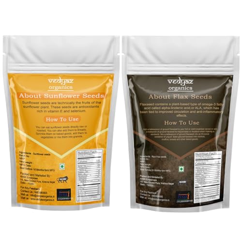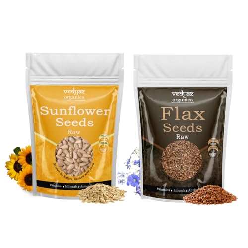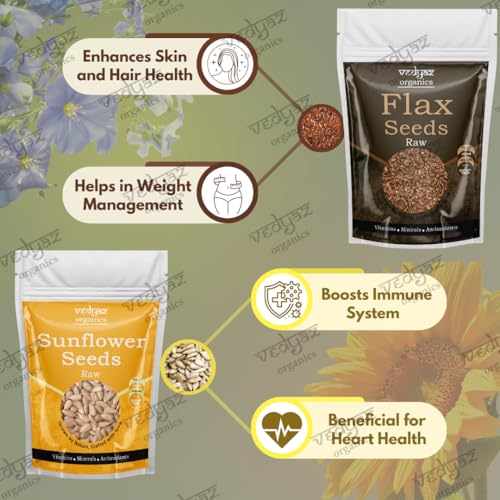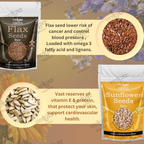 Vedyaz Organics Raw Sunflower/ Flax Seeds Combo - 2*200 gm - 100% Natural Seed Combo Packed with vitamin E magnesium & antioxidants/ Natural Energy Boosters/ Helps in Weight Management / Healthy Diet Snack