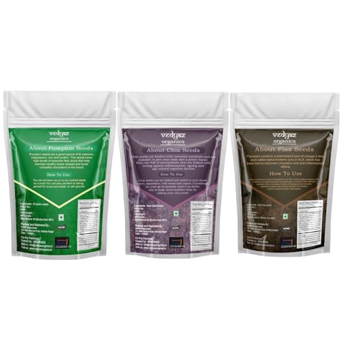 Elevate your health journey with Vedyaz Organics' exquisite blend of Pumpkin Chia and Flax seeds. Our Nutritional Seed Combo is a powerhouse of essential nutrients carefully curated to support your well-being naturally. From enhancing your meals to boosting your energy levels these seeds are your perfect daily companions for a vibrant lifestyle. Perfectly balanced and bursting with flavor it's the ultimate choice for those seeking a delicious way to nourish their body and mind.