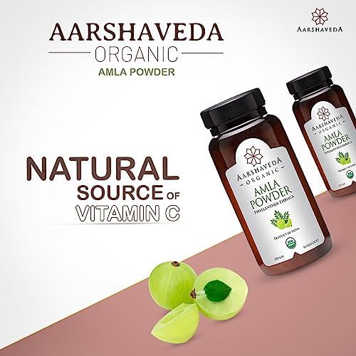 Personal care has become the need of the hour in the advent of growing pollution levels stress and sedentary lifestyle. Looking after the health of your skin and hair is essential in order to maintain a youthful and confident look. Fortunately nature has already provided you with everything you need for your self-care routine. Aarshaveda brings to you Organic Amla Powder that is prepared using natural Amla or Indian Gooseberry to provide you with the necessary dose of nutrients required to maintain yourself. This powder is ideal for all those individuals who are looking for a natural product to ensure good hair skin and immunity.Amla has been a renowned fruit in Ayurveda for its plethora of health benefits. This is the fruit of a small deciduous tree native to India which is also considered sacred to Goddess Laxmi. Aarshaveda has prepared this Amla Powder using wild amla which is traditionally used in Ayurveda as it is rich in nutrients and hence is quite bitter too. The powder is devoid of any kind of harmful preservatives artificial flavours and colours making it a safe choice for every member of your family.Amla is considered to be a rich and natural source of Vitamin C. This particular nutrient makes this Amla Powder a great choice for your overall health. The powder also contains antioxidants that help flush out toxins from your body to rejuvenate your system. Moreover this powder also helps you to restore energy digestive health and vitality. Amla powder also builds your bodyâs defence mechanism to strengthen your immunity.