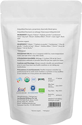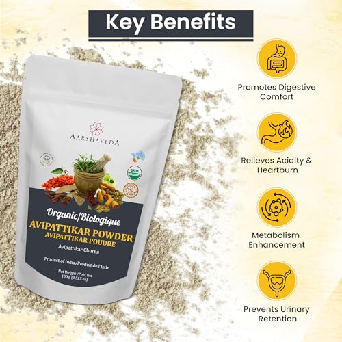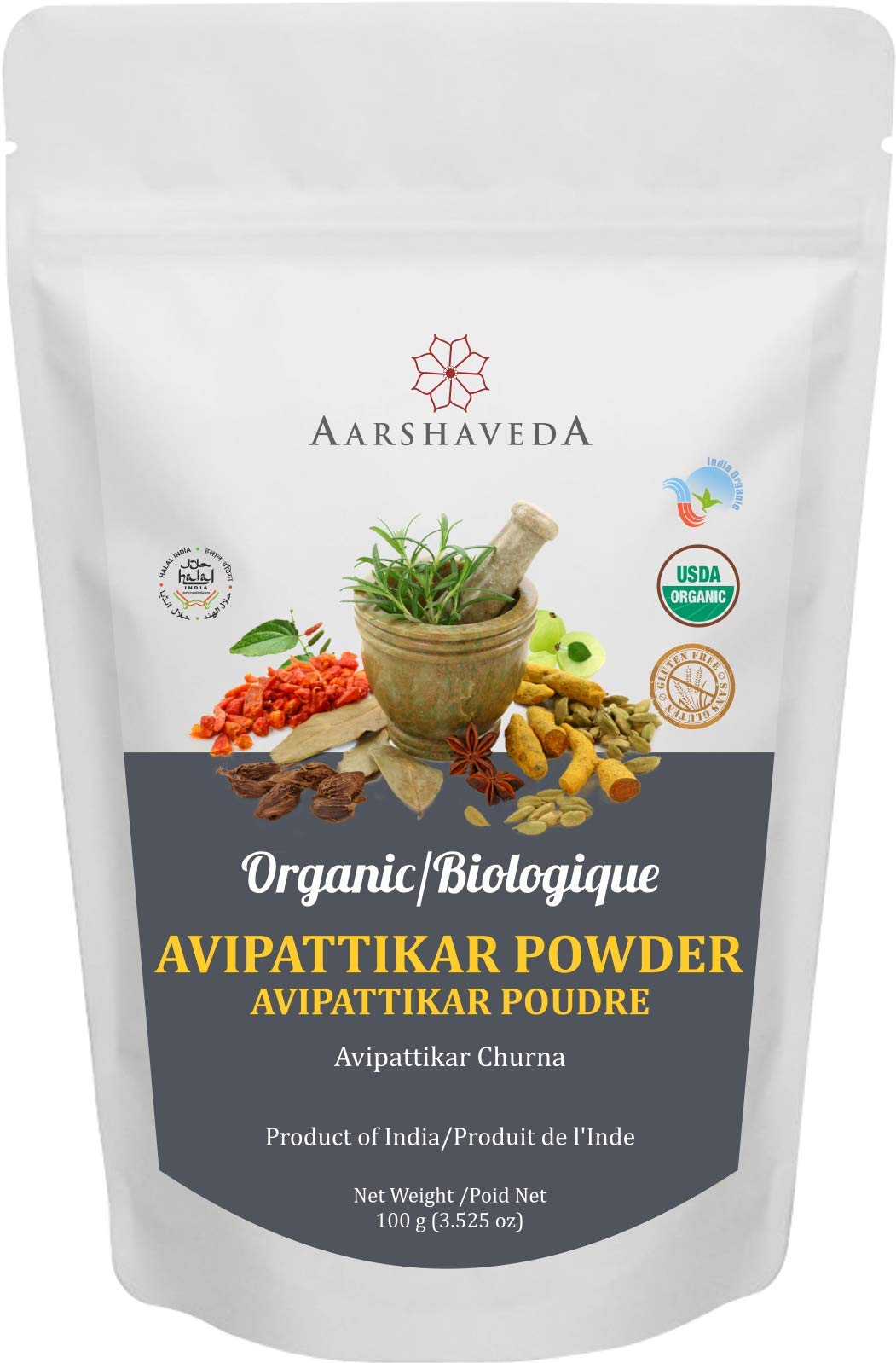 Aarshaveda Organic Avipattikar Powder | Acidity Ayurvedic Medicine | USDA | EU Organic | Halal Certified | 100 Gm
