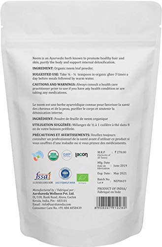 Aarshaveda Organic Neem Leaf Powder 200g - USDA Organic, EU & Halal Certified, Supports Skin, Hair Care & Blood Purification, Dental Care, Immune System, Digestive Health, Natural Ayurvedic Powder