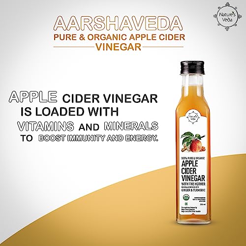 Aarshaveda Pure & Organic Apple Cider Vinegar With Mother | Naturally Infused With Turmeric & Ginger | For Weight Loss | Strengthens Immunity | 250ml