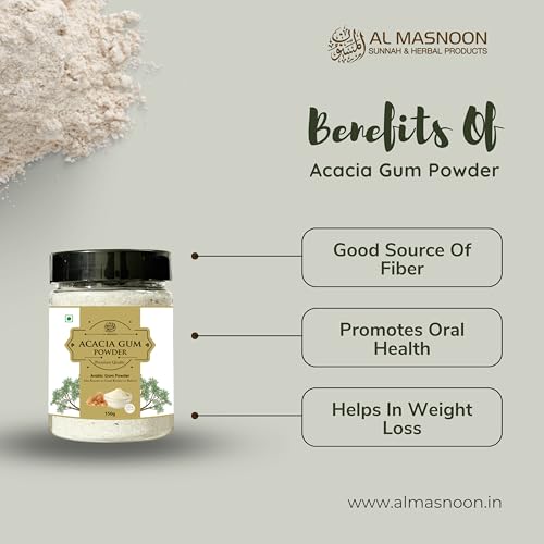 AL MASNOON Gum Acacia Powder 150g Also known as Acacia Fiber / Gound Powder (in Hindi). Supports intestinal and digestive wellness. No artificial flavors colors sweeteners or preservatives;