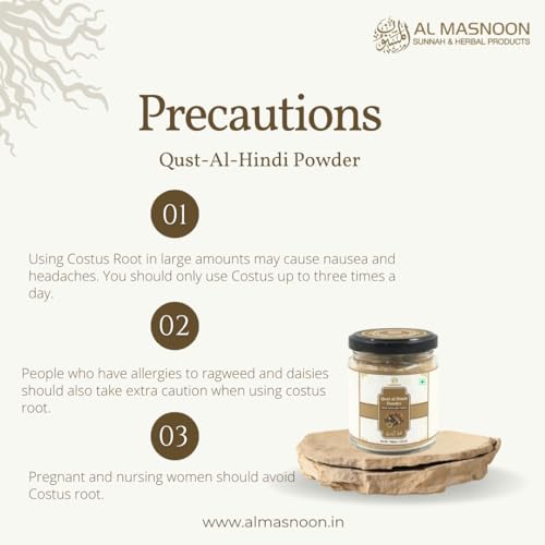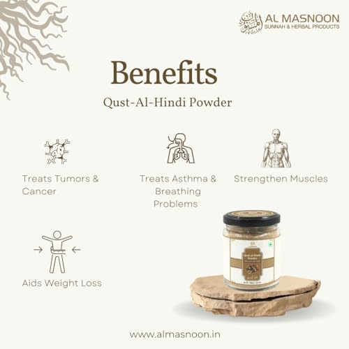 Discover the natural healing power of AL MASNOON Indian Costus Root Powder. This 100% pure and natural product derived from premium quality Qust al Hindi offers numerous health benefits including digestive support and respiratory relief. Rich in antioxidants it helps combat free radicals and supports overall well-being. Versatile in use it can be added to teas tinctures or used as a topical application. Packaged in a convenient resealable pouch it ensures freshness and potency.