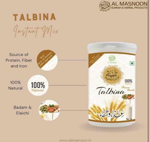AL MASNOON Talbina (with badam elaichi) Instant Mix 300 gms/Talbeena Badam Elaichi/A Healthy & Sunnah Protein Powder & Immunity Booster for all Age Group (Special Diet)