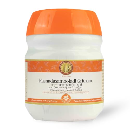 AVP Rasnadasamooladi Gritham is an Ayurvedic medicine that provides relief from joint pain and other symptoms associated with rheumatism. This herbal gritham contains a nourishing blend of Rasna Dashamoola and other rejuvenating herbs that work together to support healthy inflammation response and lubricate the joints. A warming preparation it penetrates deep into the tissues and soothes aches and pains. Regular use helps maintain supple joints and flexible movements. The unique formulation of AVP Rasnadasamooladi Gritham has been used in Ayurveda for centuries to promote comfort and well-being for those suffering from arthritis or other rheumatic conditions. This 150gm pack is easy to consume and digest making it a suitable choice for long-term joint care and maintenance of optimal musculoskeletal health.