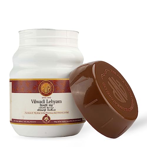 Vilwadi Lehyam a traditional Ayurvedic medicine used to calm vitiated Kapha and Pitta elements in the gut and bowel and is beneficial in the treatment of bowel and digestion-related health issues. Vilwadi Lehyam is made from the main ingredient Vilwamula (Aegle Marmelos) which is known for its antiemetic properties and benefits for stomach-related issues such as constipation peptic ulcers intestinal worms infestation and vomiting and nausea.