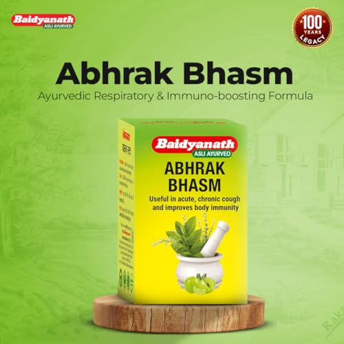 Abhrak bhasma is an Ayurvedic medicine for cold and cough and also helps combat gastric issues. This product is manufactured by Shree Baidyanath Ayurved Bhawan Pvt. Ltd. Consume 250-500mg twice a day or as directed by Ayurvedic practitioner.