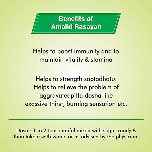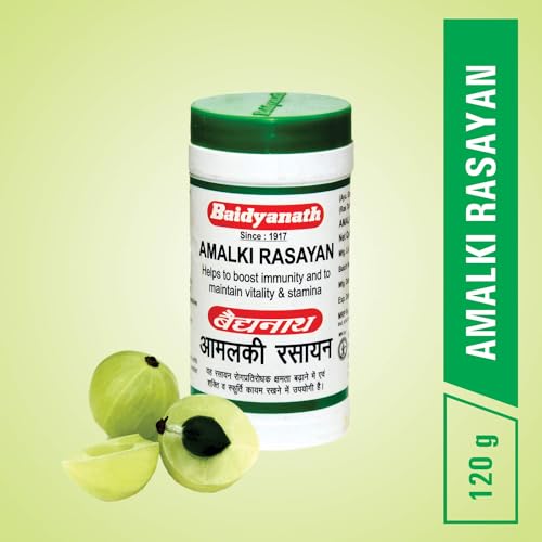 Baidyanath Amalki Rasayan assists natural internal cleansing and helpful effective remedy in reducing acidity. Regular use also shows to improve vigour vitality and strength. It mainly has antioxidant action and vitamin C content which fights against free radicals and reduces the signs of ageing. This action is responsible for its rejuvenating properties. It has strong immunity boosting properties.