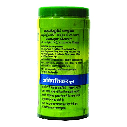 It neutralizes the acid secretion in the gastrointestinal tract and promotes the production of digestive enzymes which aid in the absorption of nutrients. Hence it is known for its antacid activity. Avipattikar churna possesses strong carminative antioxidant and anti-inflammatory properties that aid in curing imbalance related to pitta dosha. The unique combination of 14 proven herbs to improve the functioning of the digestive system