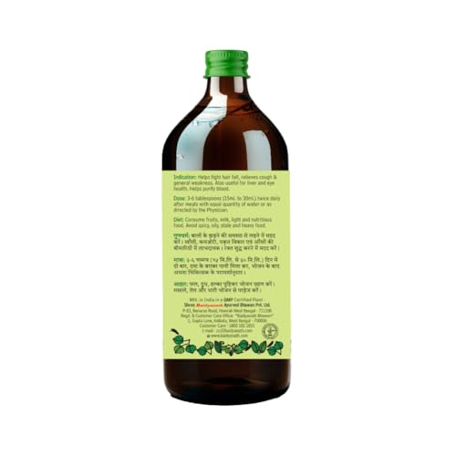 Baidyanath Bhringrajasav is a 100% Ayurvedic Tonic that helps fight hair fall problems & other ailments. It is useful to maintain your overall hair health & provides strong & nourished hair. It helps relieve cough & manage general fatigue. It is also useful for the treatment of eye diseases