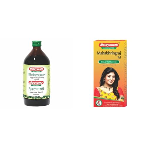 Baidyanath Bhringrajasava 450 ml SyrupIt's a classical ayurvedic formulationBaidyanath Mahabhringraj Tel - 100 mlMahabhringraj Tel is pure Ayurvedic chemical free nourishing hair oil made scientifically with goodness of Bhringraj an herb which is known in Ayurveda as âKeshrajâ- king of hair which helps your hair grow longer and healthier. The tail is prepared by Traditional Ayurvedic methods (Kshirpak vidhi) with a combination of 15 valuable clinically proven herbs dipped in pure Til tail (Sesame oil). This process with till tel as base oil will help to extract the entire medicinal qualities from the herbs giving us potent Mahabhringraj tel. Regular gentle massage of this therapeutic hair oil on the scalp will help control hair fall strengthen hair from their roots and is a helpful remedy for Dandruff. Itâs a 100 % Natural formulation free from mineral oils No silicone No synthetic colors and fragrances.