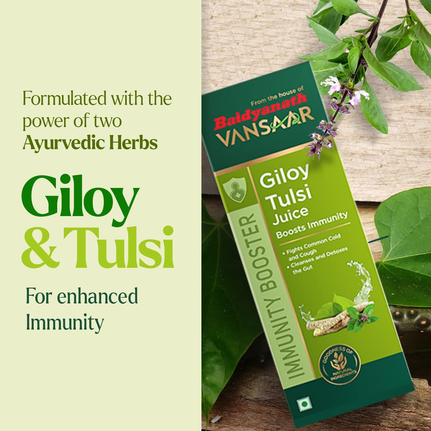 Baidyanath Giloy Tulsi Juice - Helps Boost Immunity - 1LBaidyanath Giloy Tulsi Juice is extracted from fresh Tulsi leaves and Giloy stems. These two herbs individually have great health benefits and together they become more effective in boosting your immunity levels. Tulsi and Giloy are popular and useful Ayurvedic herbs. They have been used in ancient Ayurvedic medicines to treat respiratory illnesses infections and allergies.Baidyanath Kesari Kalp Royal Chyawanprash - Enriched with Gold Silver and Saffron - 1kgBaidyanath Kesari Kalp Royal Chyawanprash â Anti-ageing tonic for rejuvenation and vitality enriched with Gold Silver & Saffron with 44 herbs and minerals. Baidyanath Kesari Kalp Royal Chyawanprash is an unique research formulae and excellent Ayurvedic tonic formulated with the combination of rare herbs rich spices and fruits by renowned Ayurvedic Scholars & Baidyanath Research Foundation. The materials are very carefully chosen to impart right benefits that rejuvenate the body and bring back youthful energy and vigor. Kesari Kalp â Royal Chyawanprash is an excellent remedy to relieve symptoms of premature ageing weight loss disability vitamin & mineral deficiency & convalescence. These ingredients give the body the much-needed power to cope up with todayâs hectic life. Baidyanath Kesari Kalp â Royal Chyawanprash is the answer to the need of people over 40 years of age for keeping the body and mind healthy and active. It has anti-ageing properties and its regular use builds immunity. As one gets older the body usually gets tired and working efficiency drops. Baidyanath Kesari Kalp â Royal Chyawanprash helps in faster cell regeneration and works towards elimination of fatigue. It detoxifies the body and builds healthy tissues.