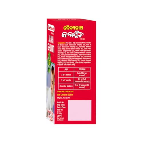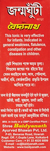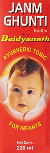 Baidyanath Janmghunti tonic is very effective for Infents. It is used in general weakness flatulence constipation and other diseses in .It contains water extract from Saunf Root of Saunf Vaividang Amaltas Sanai Patta Chhoti Harre Bari Harre Chilka Bach Anjeer Ajwain Gulabphool.