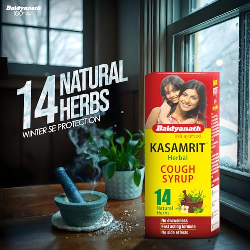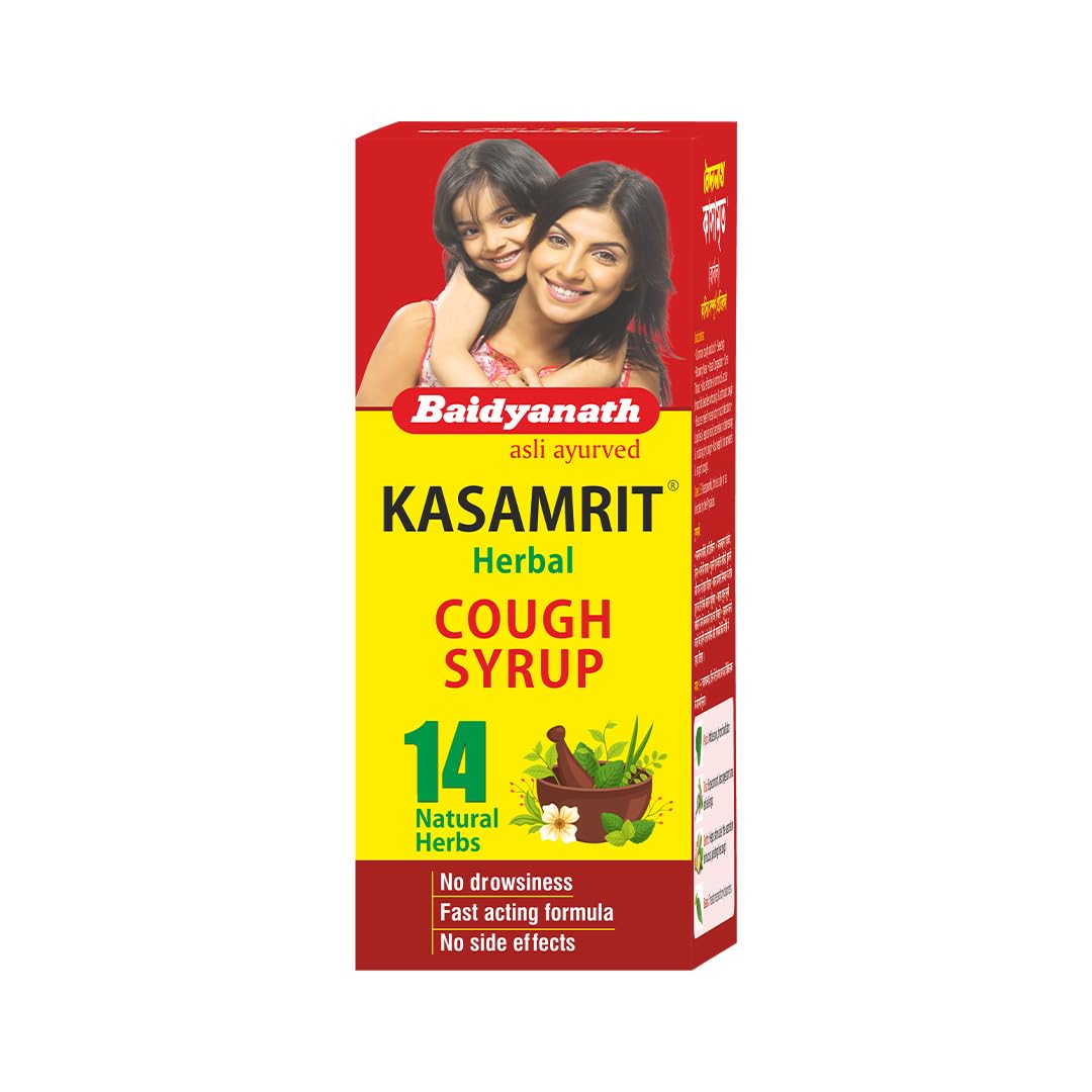 Baidyanath Kasamrit Herbal Cough Syrup acts as an herbal medicine for common cough and cold sneezing running nose nasal congestion and sore throat. It helps relieve itchy scratchy throat and liquifies and expels distressing and irritating cough. Consume 1-2 teaspoons thrice a day or as directed by the physician.