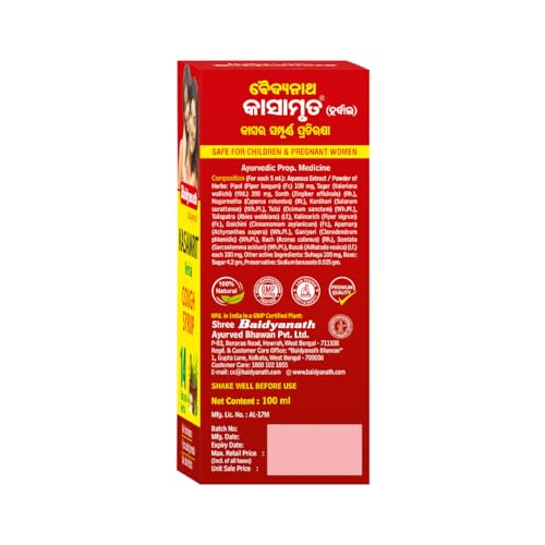 • 100-YEAR LEGACY WITH UNCOMPROMISED QUALITY: Manufactured by Shree Baidyanath Ayurved Bhawan Pvt. Ltd. Baidyanath Kasamrit Herbal Cough Syrup is prepared in a GMP certified facility