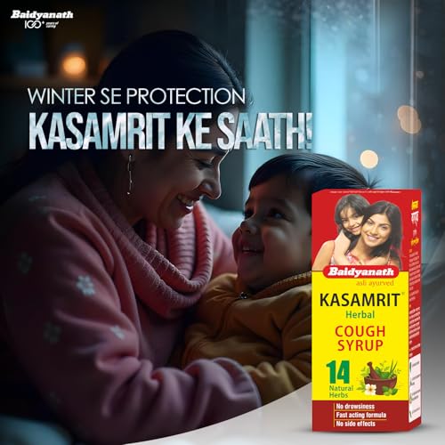 Baidyanath Kasamrit Herbal Cough Syrup acts as an herbal medicine for common cough and cold sneezing running nose nasal congestion and sore throat. It helps relieve itchy scratchy throat and liquifies and expels distressing and irritating cough. Consume 1-2 teaspoons thrice a day or as directed by the physician.