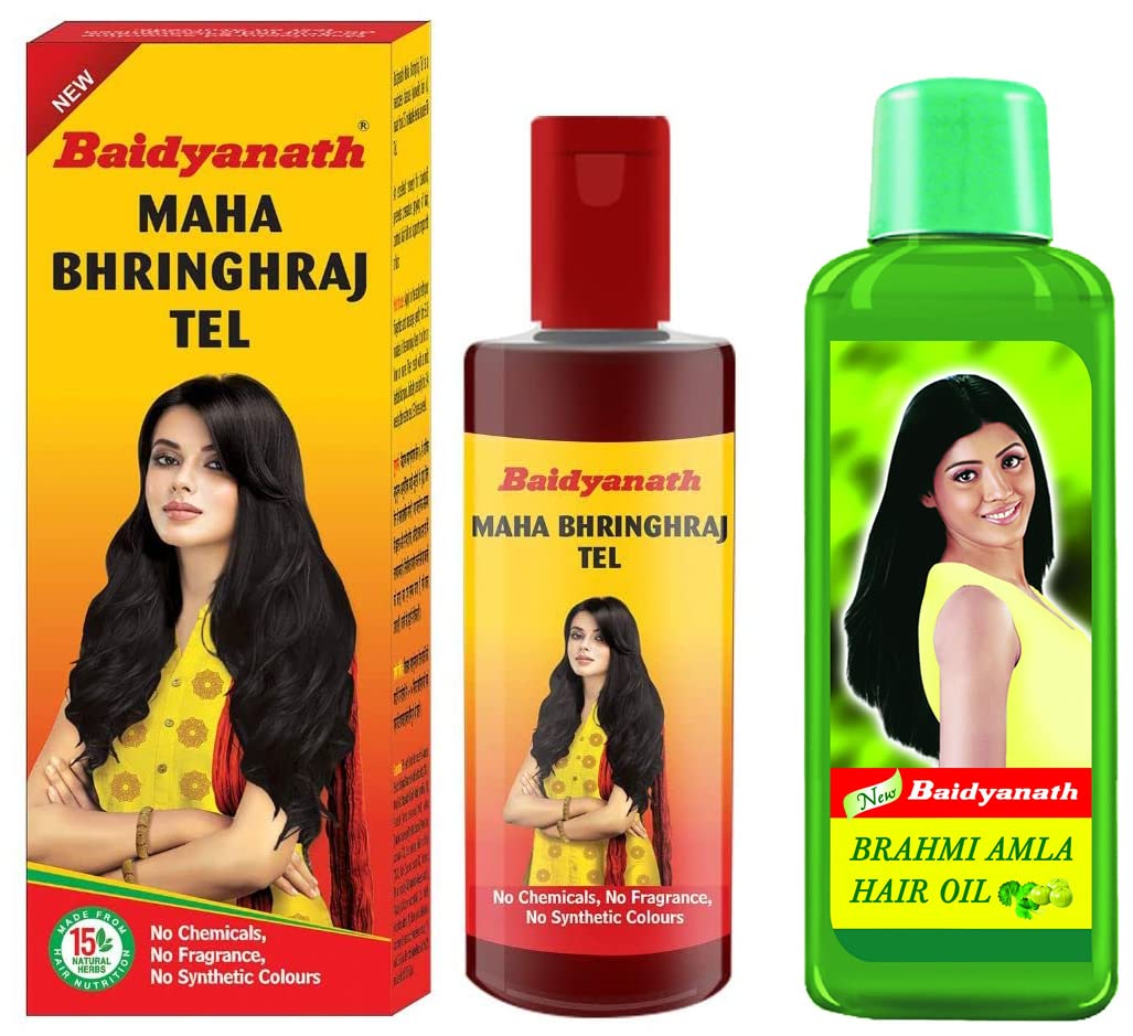 Baidyanath Mahabhringraj Tel (Original) | Hairfall Control | Ayurvedic Medicated Hair Oil | 4X More Effective | For All Hair Types (Male & Female) - 200mlBaidyanath Mahabhringraj Tel is considered really effective for promotoing overall hair health. Made up of best quality herbs Mahabhringraj tel not only helps the hair look shiny and lustrous but nourishes it from within. Mahabhringraj oil is also know to relieve pressure from the multiple pressure points present in the scalps. Mahabhringraj Oil considered best for advanced hair care contains hand plucked hair freindly ayurvedic herbs that prevent hair damage.Baidyanath Brahmi Amla Tel - 200 mlBaidyanath Brahmi Amla Hair Oil is a hair tonic for nourishing hair and keep it fresh and moisturized. As the name indicates it is made up of Ayurvedic herbs i.e. Bahmi and Amla and is being used for ancient times. Helps to improve hair health.