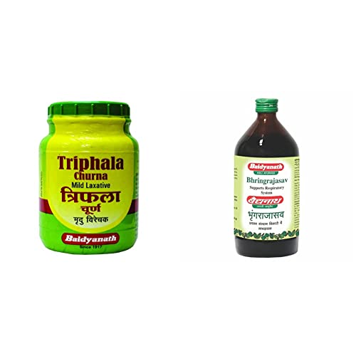 Baidyanath Nagpur Triphala Churna Vitamin C Iron & Zinc Natural 500 gBaidyanath Triphala Churna 500 g is an incredible natural cure that comprises of Haritaki Bibhitaki and amalaki. Base salt and acid blended powder is warm in nature digestible tasteful and enhances the hunger.Baidyanath Bhringrajasava 450 ml SyrupIt's a classical ayurvedic formulation
