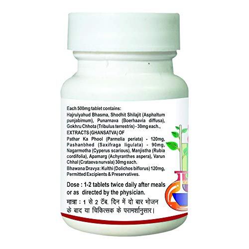 Patharina is the combination of herbs and bhasmas. The content Hajrul Yahud bhasma (Calcined Lime Silicate) and Shilajit (Asphaltum punjabimum) relieves the problems related to urinary tract infections. Patharina normalizes urinary pH and alleviates burning during urination. Remedy for urinary calculi.
