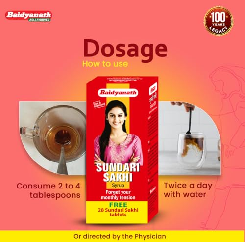 Baidyanath Sundari Sakhi is an ayurvedic tonic that supports women's health needs. The herbs used to make these tonic are popularly known for maintaining a healthy functioning of the uterus. In case of lower abdominal pain during women's menstrual cycle Baidyanath Sundari Sakhi's herbal ingredients may help relieve discomfort. Consume 15ml of this tonic with equal quantities of water twice a day or directed by the physician.