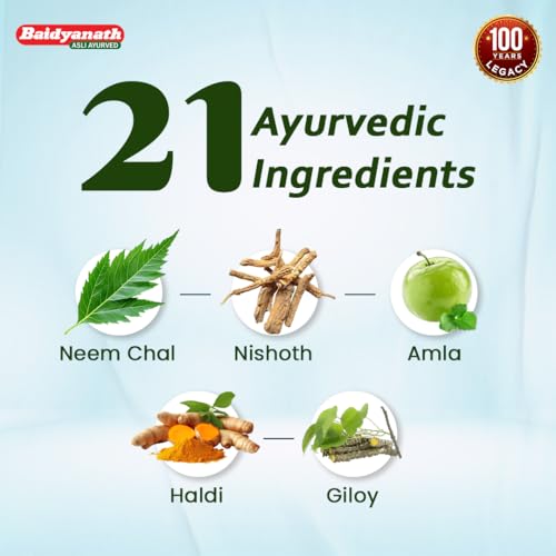 Ingredients: Water extrac from Anantmool(Hemidesmus indicus)Senaipatti(Cassia angustifolia)Sital Chini(Piper cubeba)Nishoth(Operculina turpethum)Haritaki (Terminalia chebula)Amlatas(Cassia fistula)Kalmegh(Andrographis paniculata)Chiraita (Swertia chirata)Giloy(Tinospora cordifolia)Neem chhal(Azadirachta indica)Chop Chini(Smilax china)Gorkmundi(Sphaeranthus indicus)Manjit(Rubia cordifolia)Daru haldi(Berberis aristata)Khadirsar (Acacia catechu)Kanchnar chall (Bauhinia variegata)Haldi(Curcuma longa)Lal Chandan(Pterocarpus santalinus)Usba(Smilax ornata)Kasaudi(Cassia occidentalis)NilkanthiSyrup(Sugr)