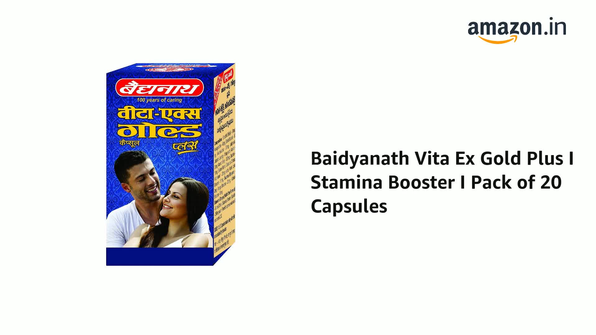 Baidyanath Vita-Ex Gold Plus is a unique formulation fortified with gold for sustained stamina and vitality. The capsules promote menâs strength and activeness. It is a non-hormonal vitalizer cum tonic which helps restore energy vigor and stamina. Vita-Ex Gold Plus does not come with any diet restrictions.