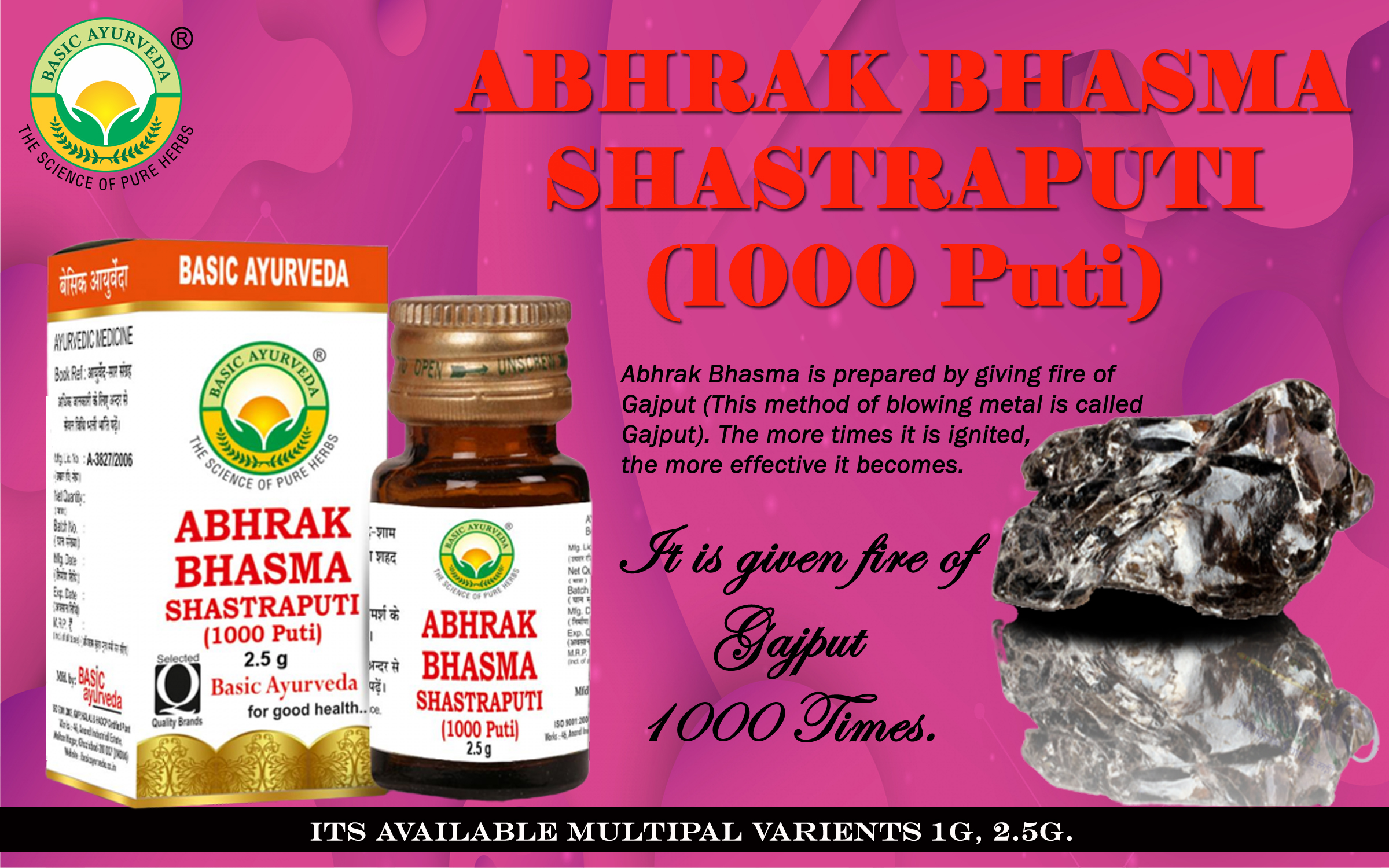 BASIC AYURVEDA Abhrak Bhasma Shastraputi (1000 Puti) 1 Gram Pack of 3 |