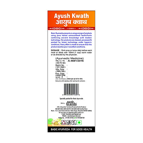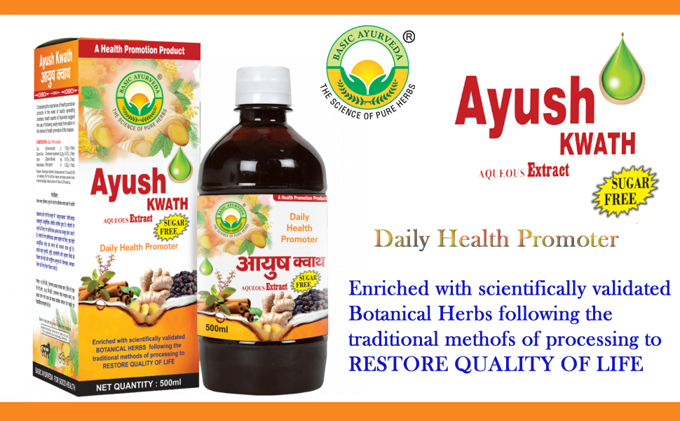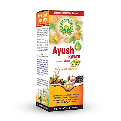 • Basic Ayurveda Ayush Kwath liquid extract sugar-free is an ayurvedic kadha that helps to boost immunity fight infections cough & colds throat irritation and improve respiratory functions.