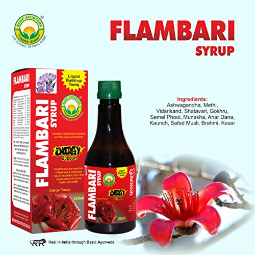 • Basic Ayurveda's Flambari syrup orange flavor contains herbal liquid extracts and fruit juice concentrates. It helps energy support.