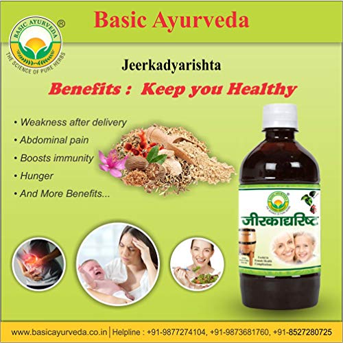 • Basic Ayurveda Jeerakadyarishta is a herbal classical ayurvedic formulation accurately composed that is available in the form of liquid and is mainly useful for female health problems and stomach-related problems.