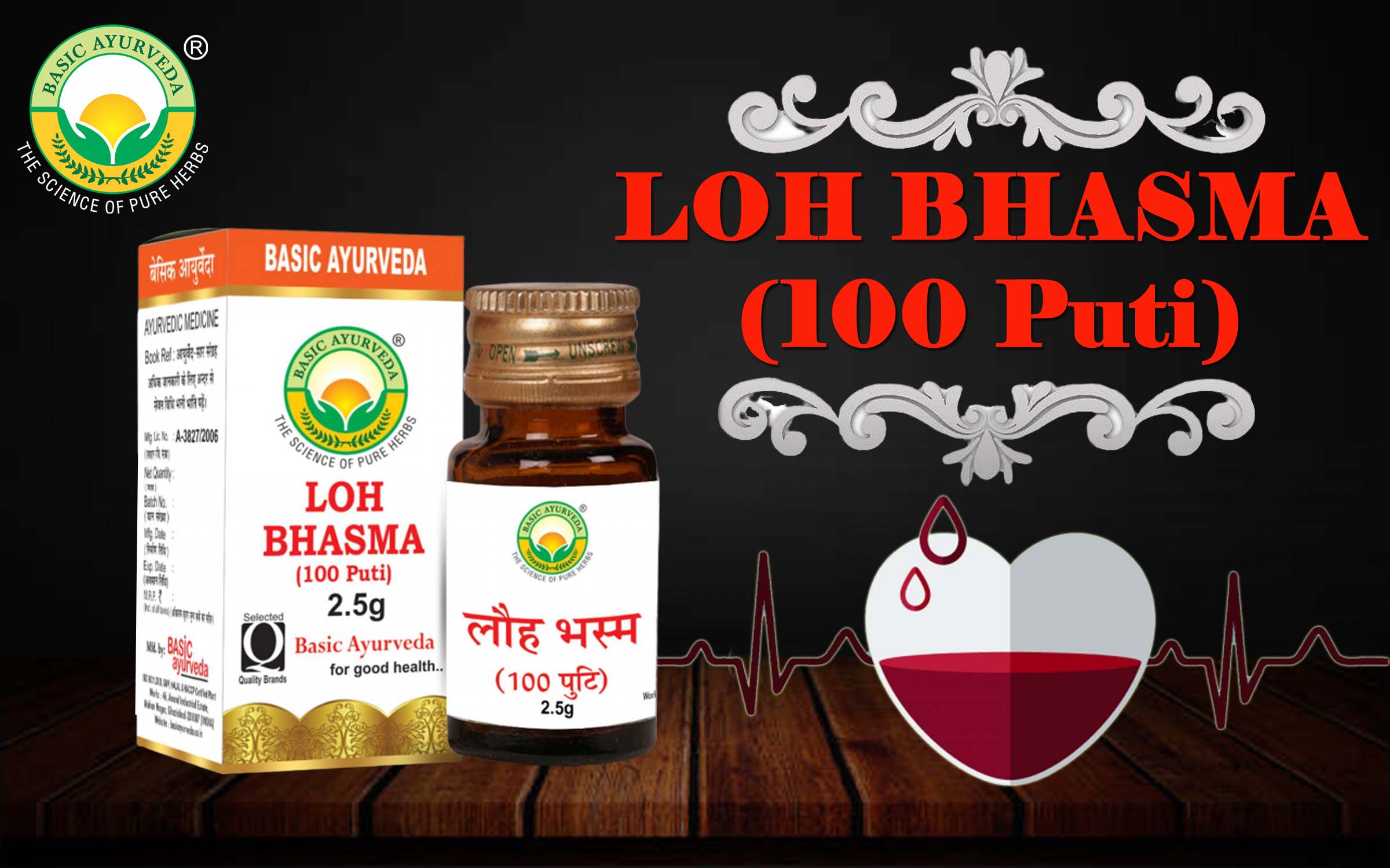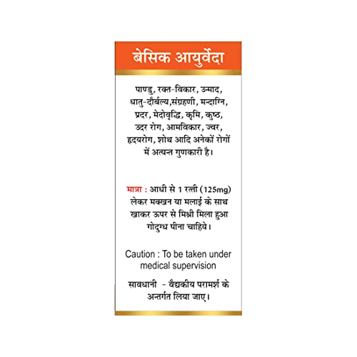 • Basic Ayurveda Loh Bhasma is an ayurvedic formulation that comes in powder form grade a quality. It helps with a condition marked by a shortage of red blood cells or hemoglobin in the blood resulting in pallor and weariness.